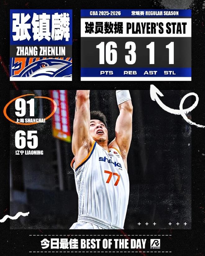 加盟上海后张镇麟的表现一直都不温不火,但此役面对老东家先发31分钟,10中5,三分4中1,罚球5中5,拿到16分3篮板1助攻1抢断,命中率50%,他拿到本赛季单场第二高分。